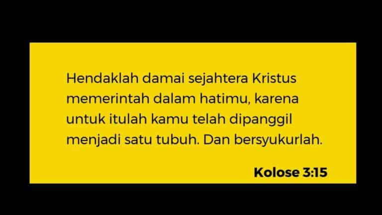 Kolose 3:15Hendaklah damai sejahtera Kristus memerintah dalam hatimu, karena untuk itulah kamu telah dipanggil menjadi satu tubuh. Dan bersyukurlah. Dan…