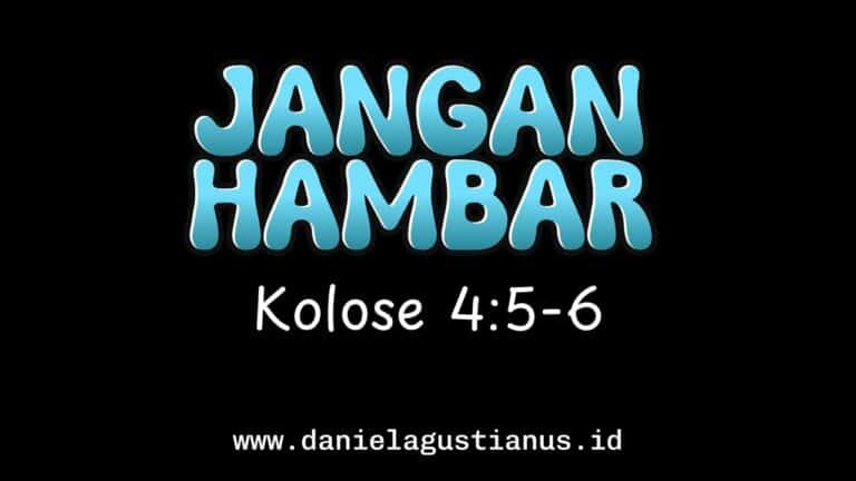 Kolose 4:5-65 Hiduplah dengan penuh hikmat terhadap orang-orang luar, pergunakanlah waktu yang ada.6 Hendaklah kata-katamu senantiasa penuh kasih, jangan hambar,…